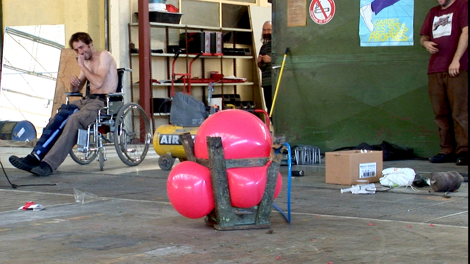 Cheminement est une immersion dans le travail de création des Tricyclique Dol, collectif de trois artistes-bricoleurs élaborant une installation gigantesque inspirée des oeuvres de Peter Fischli et David Weiss.