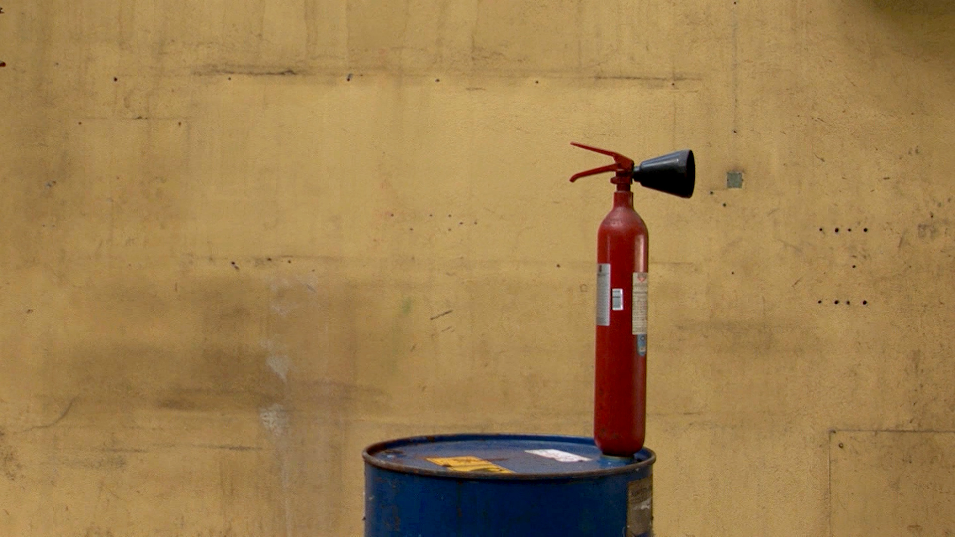 … le seau descend sur la plaque, lance le poids, lance les rouleaux qui font le tour, font sortir une énorme balle de ping pong qui fait à peu près deux mètres, ca fait tomber un tuyau qui tape sur les escaliers, qui lance des milliers de balles de ping pong qui se déversent dans les escaliers qui font lever la binette qui tape sur la scie sur laquelle est posé le chien, ca fait ressort, tape dessus, repart dedans, tape dans le petit muret, qui tape dans le pneu, qui roule, qui tape dans le pelle, qui lance la petite biche sur son patin à roulettes, qui tombe sur le porte-bouteilles, qui tape sur le scotch qui fait tomber la règle de l’écolier, qui tire sur le poids, qui fait tourner le truc à carte postales, qui lève l’autre poids…